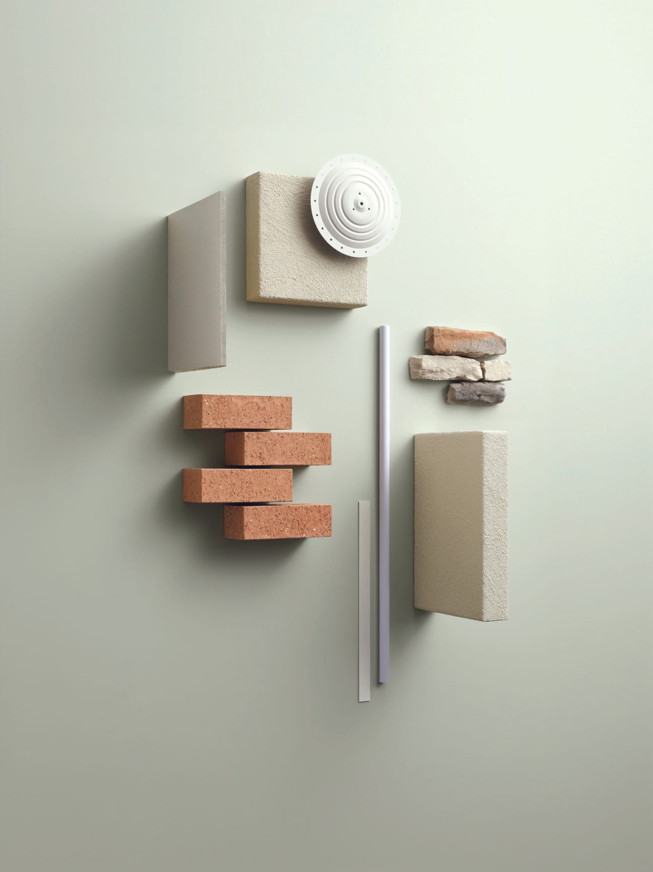 Our Pure Naturals palette with raw finishes and subtle highlights, combines natural brick with stone and heavily textured render. A refined roof tile and crisp trims complete this calm palette.