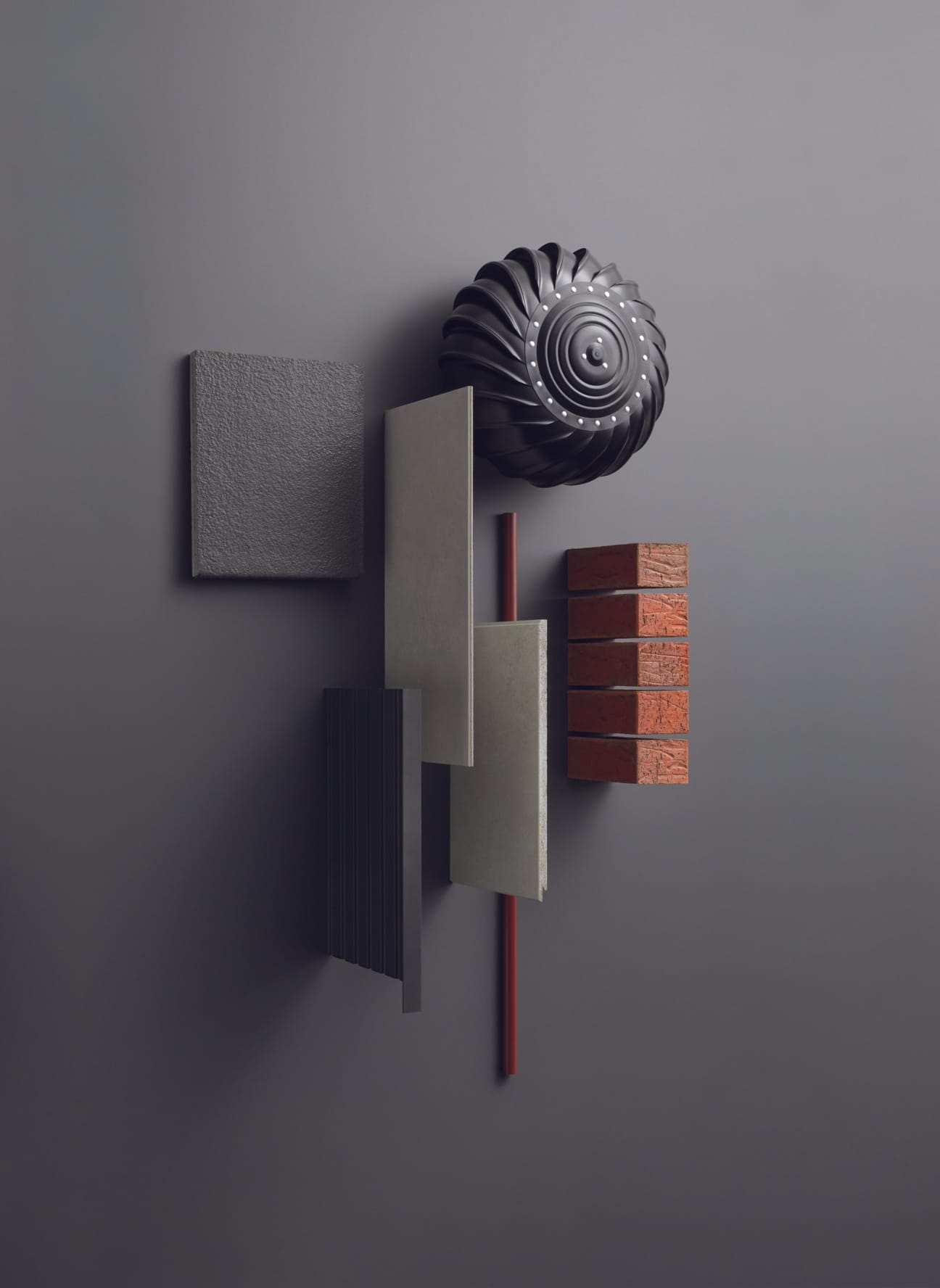 A bold palette featuring strong darks and neutrals, combining rich red brick with smooth and battened cladding, finished with defined accents.